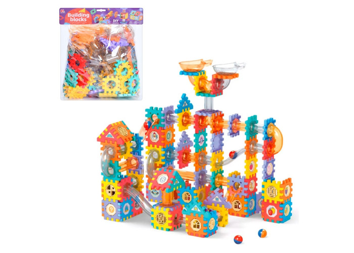 Можна сказати, що це конструктор для малюків 2 в 1. З одного боку, - це класичний конструктор, з якого можна збирати будиночки та інші споруди, а з іншого, це лабіринт. Окремий жанр за захопливістю і конструкціями. Всього в наборі 202 деталі, включно з кульками для лабіринту.
