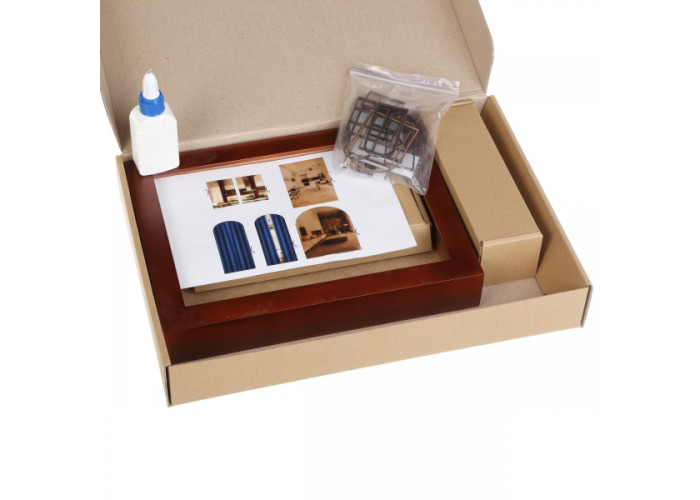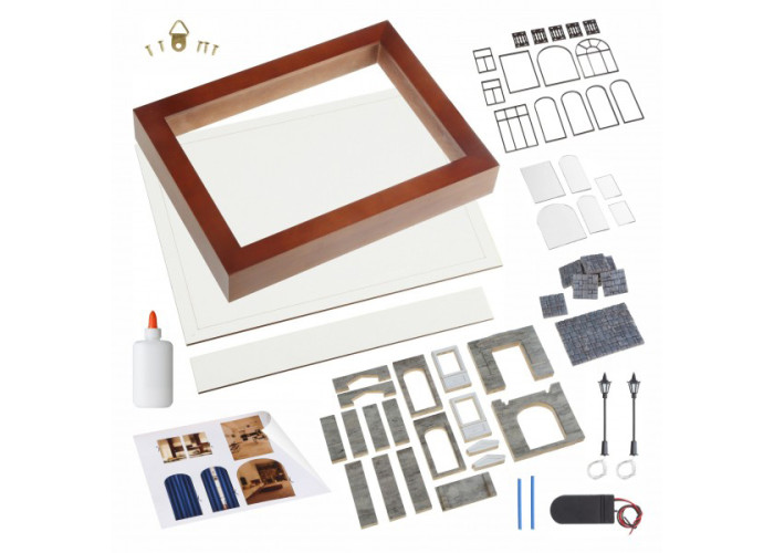 Основні матеріали: деталі фасаду моделі та частина декоративних елементів виготовлені з високоякісного гіпсу, рама з натуральної деревини, деталі вікон та дверей виготовлені із МДФ та акрилу; додатково набір входить клей ПВА, мініатюрні ліхтарі, блок живлення (без батарейки).