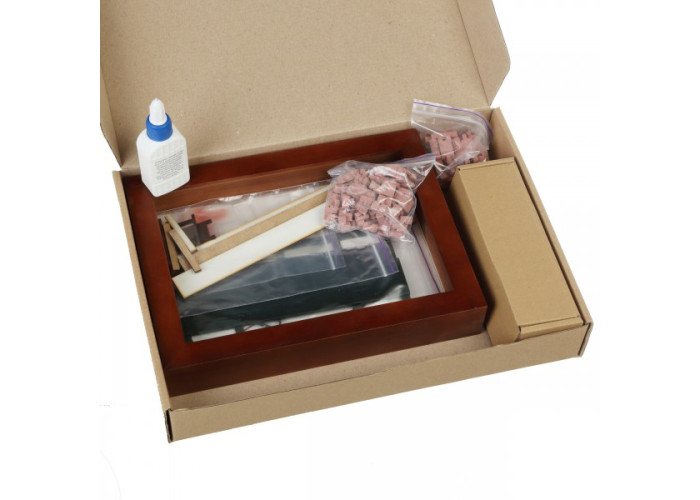 Основні матеріали: деталі фасаду моделі та частина декоративних елементів виготовлені з високоякісного гіпсу, рама з натуральної деревини, деталі вікон та дверей виготовлені із МДФ та акрилу; додатково набір входить клей ПВА, мініатюрні ліхтарі, блок живлення (без батарейки).