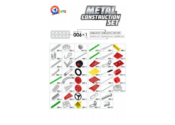 "Суперуніверсал ТехноК" - це набір для конструювання з різними способами з’єднання деталей. За допомогою цього конструктора дитина може розвивати фантазію, складаючи різні моделі (Кран), та отримувати практичні навики роботи з металевими виробами, що стане в пригоді у дорослому житті.