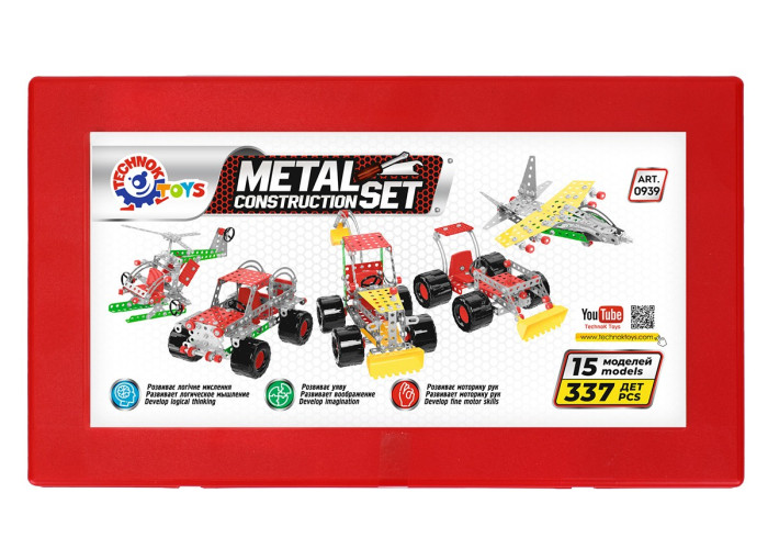 Характерна особливість - надзвичайно широка різноманітність складових та пластиковий пенал для зберігання конструктора в розібраному стані.