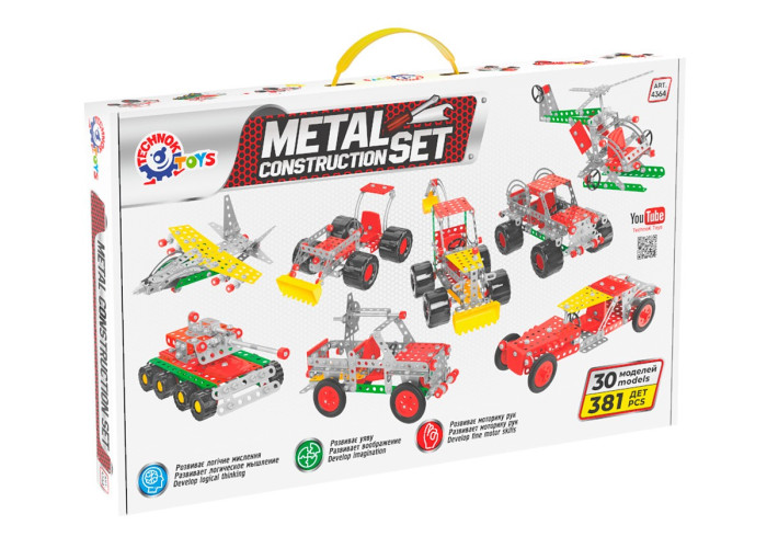 Конструктор «Мегауніверсал ТехноК» (381 дет. / 30 моделей) – це чудовий подарунок для маленького техніка, якого захоплюють різні пристрої та механізми. Даний набір викличе справжній захват у вашого малюка, адже він складається з 381 деталі – в тому числі кольорових металевих пластин, гвинтів, болтів та гайок та оригінальних деталей з пластмаси. Використовуючи всі ці елементи, безмежну дитячу фантазію та справжню викрутку, ваш маленький механік зможе самостійно створити одну з 30-ти запропонованих моделей або ж створити свою власну.