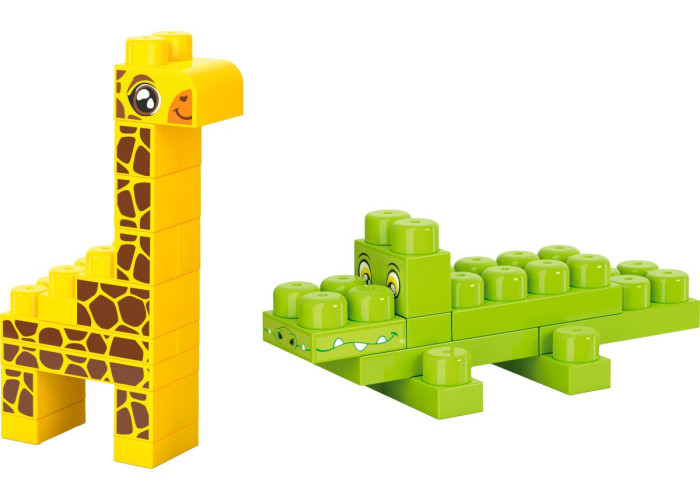 Жираф, фламінго, крокодил, слон, верблюд та зебра - кожна з цих чудових тварин може оживати в руках вашої дитини. Чудова можливість розкрити свою творчість та фантазію в процесі складання. Додатково до конструктора надаються 62 наліпки, які допомагають надати тваринкам виразності та реалізму. Це відмінна можливість навчитися деталізації та навіть обрати свою найулюбленішу тваринку. Але гра з конструктором не закінчується лише складанням тваринок. В наборі також міститься дорога і позашляховик, що дає змогу створити різноманітні сценарії гри. Маленькі дослідники можуть вирушити в екзотичну подорож по африканському континенту і познайомитись зі світом тварин.