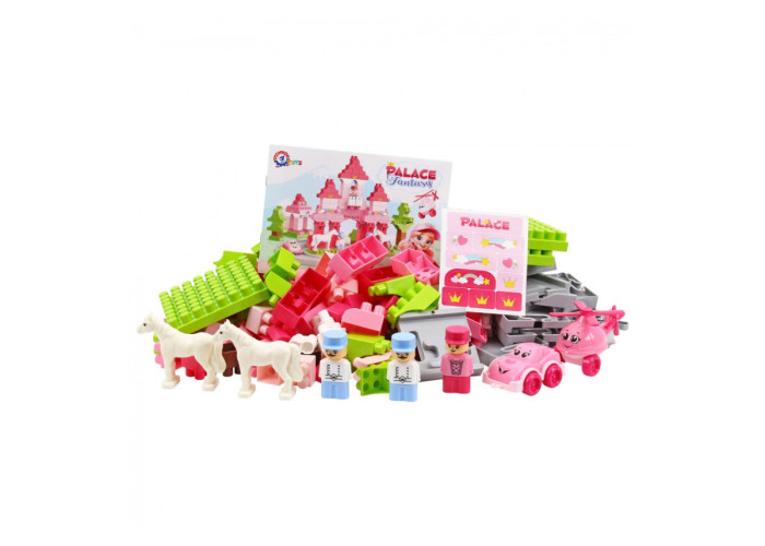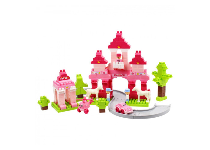 Маленькі принцеси заслуговують на власну казку – і цей чарівний конструктор створений саме для них! Набір у ніжно-рожевих кольорах дарує можливість побудувати казковий замок. Він стане домом для героїв історій, які вигадує ваша дитина: сміливих принців на білих конях і граційної сучасної принцеси, яка має власне авто та гелікоптер, що є в наборі. Тож можна влаштувати романтичні прогулянки на конях, драйвові перегони машинкою, а вертоліт послужить для повітряних подорожей!