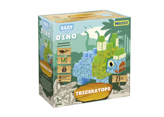 Baby Blocks Діно Трицератопс - конструктор, що складається з 23 кольорових елементів, які дають змогу побудувати двокольорового динозавра: його справжній еквівалент досягав довжини до 8 метрів.