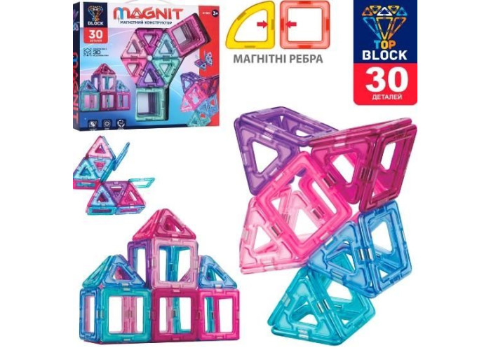 Особливість магнітного конструктора полягає в тому, що деталі кріпляться одна з одною за допомогою магнітів, поміщених у пластиковий корпус. Повертаючись залежно від необхідного полюса, магнітні деталі завжди притягуються одна до одної, що дозволяє створювати багато різноманітних конструкцій. Для малюків це розвиток дрібної моторики, створення плоских та об'ємних моделей. Для дітей старшого віку – розвиток просторового та абстрактного мислення. А для батьків – це цікавий антистрес та чудова можливість відволікти дитину від гаджетів.