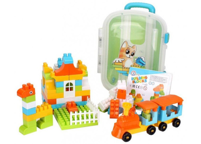 Усередині набір конструктора. Великі деталі, з яких можна зібрати будиночки, тварин, транспорт і багато іншого, що дозволить дитяча фантазія. Інструкція в комплекті.