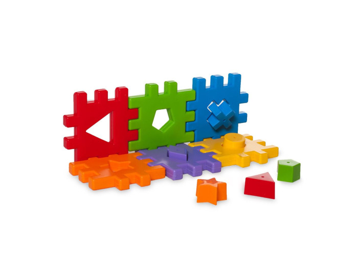 Щоб скласти куб, дитині потрібно з'єднати її стінки, які є шістьма різнокольоровими елементами. З елементів куба можна також збудувати інші конструкції. Створення конструкцій дуже корисне для розвитку творчого потенціалу дитини. Елементи гладкі та опуклі з усіх боків, що дуже зручно для маленьких ручок.
