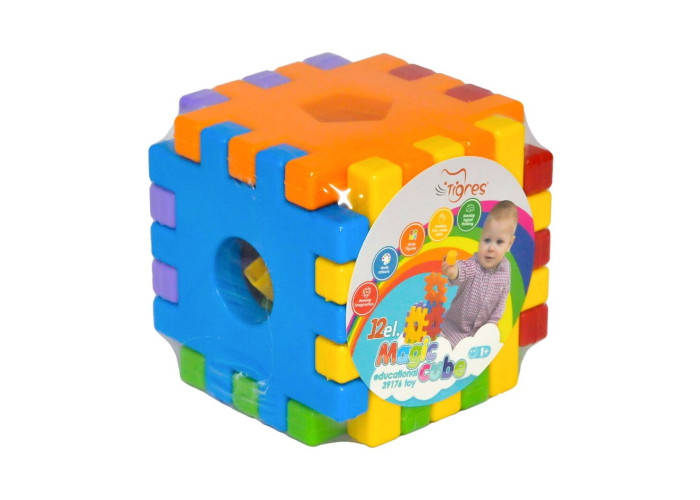 Чарівний куб 12 елементів - яскравий, захоплюючий і дуже корисний подарунок для дитини, який поєднує в собі функції конструктора та сортера.