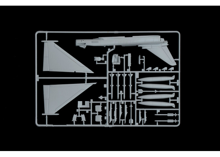 В комплект входить: - пластикові деталі на двох литниках; - прозорі деталі; - декаль; - інструкція зі збирання та рекомендації з фарбування англійською мовою.