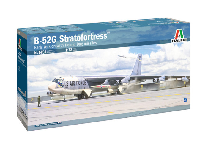 B-52 Stratofortress - найвідоміший стратегічний бомбардувальник дальнього радіусу дії з реактивним двигуном в історії авіації. Виробляється американською компанією Boeing з 1955 року і довгий час був символом холодної війни. Протягом декількох років він був основою Стратегічного повітряного командування ВПС США. B-52 випускався у значній кількості модифікацій, які поступово розвивали успішний проект, щоб краще відповідати оперативним потребам, що змінювалися. Версія "G" є найбільш серійним варіантом B-52, який постачався до крил Стратегічного авіаційного командування з початку 60-х років. Він може бути озброєний північноамериканською ядерною ракетою класу "повітря-поверхня" AGM-28 Hound Dog, яка була частиною ядерного арсеналу США до середини 1970-х років. Вона була розроблена в середині "холодної війни" для нанесення ядерних ударів по пріоритетних наземних цілях, таких як військово-повітряні і ракетні бази.