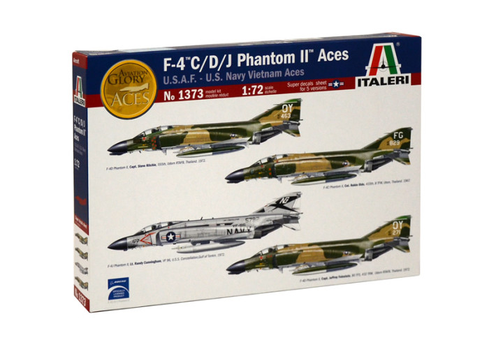 Збірна масштабна модель американського винищувача-бомбардувальника F-4 Phantom II, Italeri 1373. Набір дозволяє зібрати модель однієї із трьох модифікацій літака F-4C/D/J. Завдяки високій якості пластику та точному литтю, будівництво моделі пройде легко і не викличе труднощів. Комплект містить декаль на чотири варіанти маркування, а також докладну інструкцію.