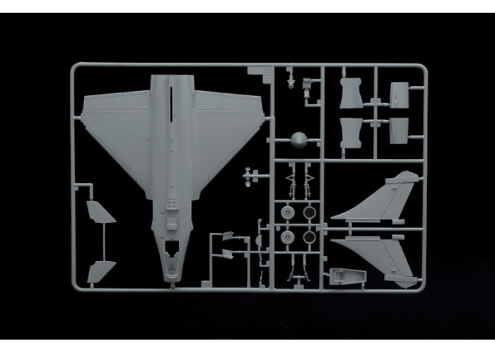 Комплект містить літники з деталями для складання (склеювання) пластикової моделі літака Rafale M в масштабі 1:72. До набору входить: • 2 літники з пластиковими деталями; • елементи з прозорого пластику; • декаль на 2 варіанти маркування; рекомендації з фарбування. Довжина збірної моделі Rafale M складає 21,2 см. Розмір упаковки – 29 x 19 x 4,5 см.