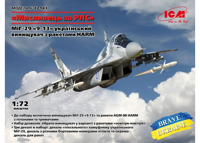 “Мисливець за РЛС” МіГ-29 “9-13” Український винищувач з ракетами HARM Влітку 2022 року ЗМІ повідомили про випадки бойового застосування протирадіолокаційних ракет AGM-88 HARM повітряного базування з українських винищувачів МіГ-29. Попри сумніви, це виявилося правдою. Це підтвердили відеоматеріали, які згодом були опубліковані в Інтернеті. Таким чином, інженерам вдалося вирішити, здавалося б, неможливе завдання – інтегрувати ракету AGM-88 HARM в систему авіоніки МіГ-29, зробивши ці винищувачі “мисливцями за радарами”. Ракета HARM, розроблена компанією Alliant Techsystems, була прийнята на озброєння ВПС США в 1983 році. Вона може вражати як безперервні, так і імпульсні РЛС, що працюють в режимі стрибкоподібної перебудови частоти. Ракета використовує двоканальну моноімпульсну головку самонаведення з осколково-фугасною бойовою частиною вагою 66 кг. Ракета HARM перебуває на озброєнні військової авіації багатьох країн, включаючи Німеччину, Італію, Іспанію, Туреччину, Грецію та Республіку Корея.