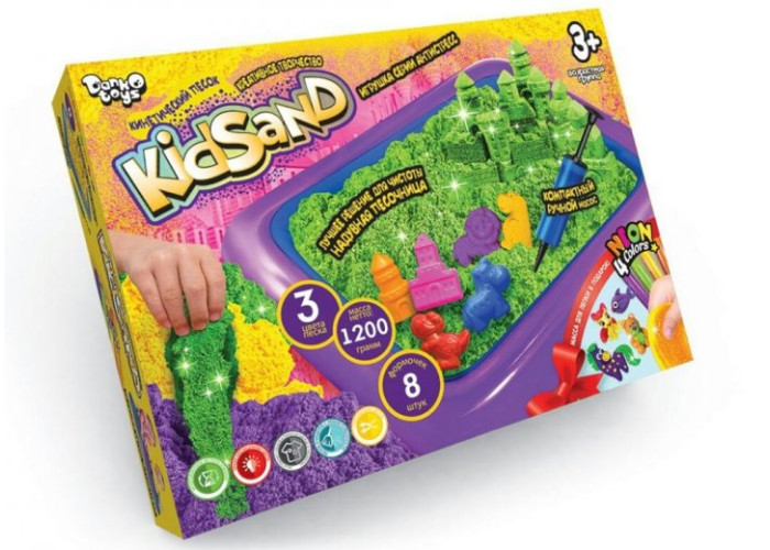 Кожна дитина любить грати в пісочниці. Кінетичний пісок KidSand зі своєю пісочницею у Вас вдома. Принадність такого «Чарівного піску» полягає в тому, що він не розсипається і не залишає слідів. Весь секрет полягає в особливій формулі, яка сприяє «в'язкості і перетіканню». Пісок стає м'яким, не розсипається на крихти і не липне до рук і інших предметів, а якщо розім'яти його в руках, він стає повітряним, пористим, «живим». Дана особливість перетворила просте заняття в захоплюючу гру, зробивши зі звичайного піску сучасну іграшку-антистрес. Захоплено перебираючи і розминаючи пісочну масу в руках дорослі розслабляються, діти розвивають моторику і сенсорику рук, роблячи всілякі фігури і вибудовуючи фантастичні замки і міста у себе в кімнаті!