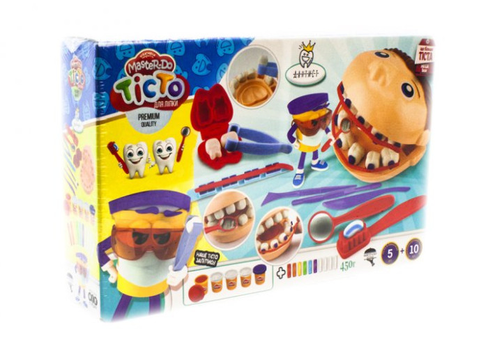 Набір тіста для ліплення "Master-Do: Дантист". Спробуйте себе у ролі дантиста, який вміє лікувати зуби, ставити пломби, встановлювати брекети та професійно видаляти зіпсовані зуби.