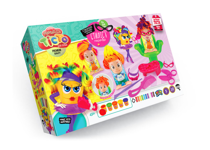 З цим набором Ви зможете відчути себе справжнім стилістом модних та креативних зачісок та здивувати всіх своїм талантом. Світ FASHION відкрито перед Вами. Все просто: формочки та крісло-екструдер із набору допоможуть створити різноманітні зачіски та прикрасити їх стильними аксесуарами. Вигадуйте свої ідеї яскравих та стильних стрижок та втілюйте їх не боячись за результат, адже нове волосся легко зробити знову! Змішуйте тісто, комбінуйте різні колірні рішення, стрижіть, робіть волосся коротким або заплетіть його в кіску! Простір для фантазії безмежний!