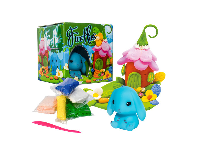 «Fireflies - зайчик» - набір для творчості, що включає в себе масу для ліплення, яка застигає і фігурку тварини, яка світиться. Завдання маляти створити унікальний будиночок для звірятка. Маленький світильник у вигляді кролика буде прикрашати кімнату дитини і створювати затишок. Дана розвага позитивно впливає на формування моторних навичок, покращує посидючість, розвиває фантазію і уважність.