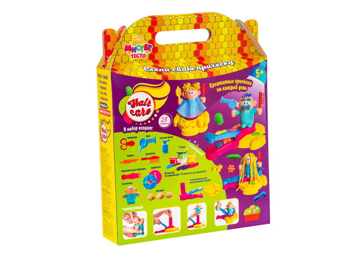 Розвинути творчі здібності та фантазію дитини допоможе набір «Містер тісто - Hair Care» (Strateg 71307). У ньому є все необхідне для маленького стиліста і перукаря - від гребінця, ножиць і фена до спеціального верстата для виготовлення стильних аксесуарів і зачіски. За допомогою великої кількості форм і приладдя дитина зможе надати креативний зовнішній вигляд фігурці, на якій вона зможе проводити всі стилістичні експерименти. Обмежень немає - тільки фантазія і бажання! Можна створити будь-яку зачіску і виліпити її зі спеціального тіста. Тісто дуже пластичне, різні кольори легко змішуються, воно не забруднює руки і може приймати будь-яку форму. Має яскраві кольори і абсолютно безпечне. Готову зачіску можна розмістити на голові ляльки-фігурки і прикрасити блискучим макіяжем з стіків.