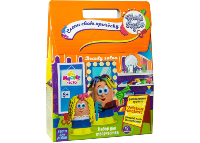 Ваше маля любить робити зачіски і мріє стати стилістом? Допоможіть створити власний салон краси за допомогою набору «Містер тісто - Hair style». Дві кумедні фігурки – хлопчик та дівчинка чекають, коли малюк за допомогою фантазії придумає та створить для них зачіску. У наборі є все для створення незвичайних і креативних моделей - ножиці, фен, машинка для стрижки, і, звичайно, те з чого можна виліпити зачіски - спеціальне тісто.