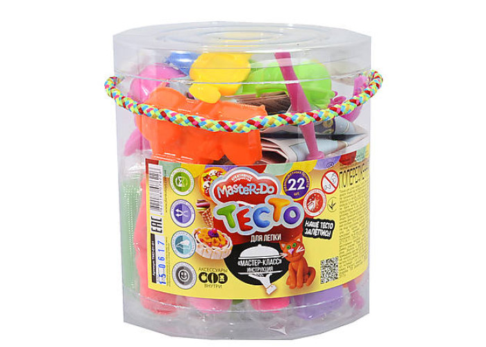 Набір для творчості , Тісто для ліплення "Master Do" 22 кольори у відрі розроблений українською торговою маркою DANKO TOYS для юних любителів рукоділля старше трьох років. Творчий набір не містить небезпечних та токсичних компонентів, здатних нашкодити дитячому здоров'ю. Унікальний дитячий комплект включає 22 різнокольорові брусочки в індивідуальній упаковці спеціальної маси для ліплення, виготовленої за інноваційною формулою з гіпоалергенного матеріалу. Вісім формочок допоможуть малюкові фантазувати, робити «пасочки» з пластиліну, створюючи неймовірні шедеври, які він з гордістю демонструватиме родичам та друзям. Компактне, легке відерце з масою для ліплення можна сміливо брати із собою, вирушаючи у поїздку чи природу. Пластилін не лише не прилипає до долонь, але й не залишає жирних плям на одязі чи меблях. Для новачків у наборі передбачена докладна інструкція щодо використання. Цікаві заняття рукоділля позитивно вплинуть на розвиток дрібної моторики, уважності, акуратності, творчих здібностей.