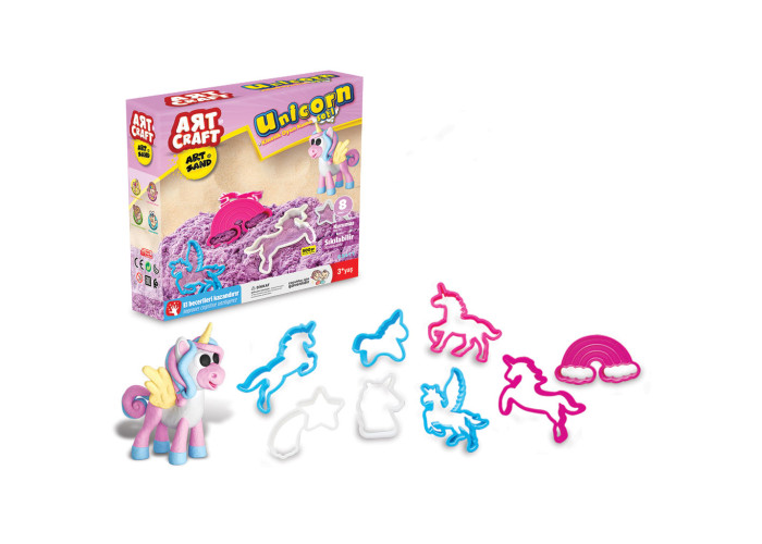Кінетичний пісок "Єдиноріг" Art Craft це набір для творчості, який дозволяє дітям створювати різноманітні фігури, використовуючи спеціальний пісок, що має унікальні властивості.
