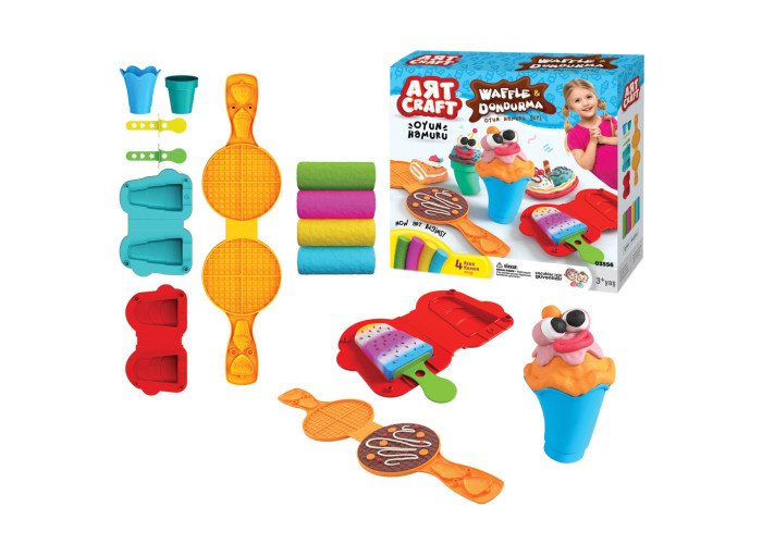 Набір для ліплення з кулінарною тематикою призначений для творчих ігор і занять з моделювання для дітей від 3 років. Комплект орієнтований на створення десертів у форматі вафель і морозива з використанням тіста для ліплення та спеціальних форм. У наборі передбачено 4 кольори тіста, які застосовуються для формування окремих елементів та можуть змішуватися між собою для отримання нових відтінків. Маса має м’яку пластичну структуру, підходить для ручного ліплення та роботи з формами, не прилипає до рук і робочих поверхонь. Після формування фігур вироби застигають на повітрі протягом 3–5 годин і зберігають задану форму. До комплекту входять аксесуари для створення вафель і морозива, зокрема формочки, конуси та інструменти для декорування, які використовуються для деталізації виробів. Усі аксесуари виготовлені з пластику та розраховані на багаторазове використання. Набір застосовується для розвитку дрібної моторики, координації рухів, просторового мислення, навичок роботи з формою і кольором під час сюжетно-рольових ігор. Модель бренду ART CRAFT використовується для домашніх занять, творчих гуртків і дитячих груп.