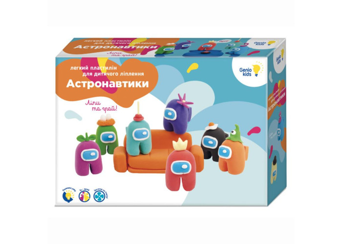 Набір для ліплення з легкого пластиліну Астронавтики містить легкий пластилін різних кольорів, завдяки якому вдасться зліпити кумедних космічних мандрівників, дотримуючись інструкції.
