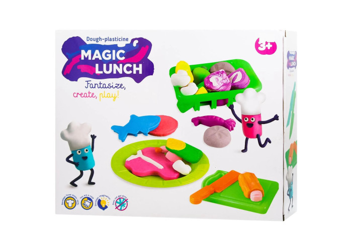 Використовуючи інструменти та аксесуари набору, ваша дитина зможе не просто ліпити, а відчути себе справжнім кухарем, занурившись у процес гри: взяти кошик, піти за покупками, порізати овочі на дошці, приготувати обід і накрити на стіл. Ліплення сприяє розвитку творчих здібностей, мислення та уяви у дитини, розвиває дрібну моторику, знайомить із формами та кольорами предметів, є прекрасною розвагою і приносить величезне задоволення.