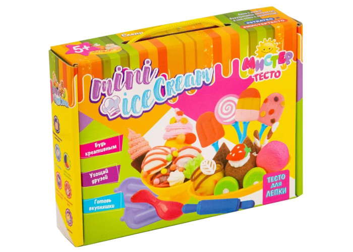 Ваш малюк любить морозиво і солодощі, а також пригощати ними друзів Допоможіть створити йому власну фабрику смачненького за допомогою набору для ліплення «Містер тісто - Mini Ice Cream». Велику кількість різних видів смачних ласощів допоможуть відтворити формочки, кухонний набір і стаканчики для морозива. Готове частування можна сервірувати. Тісто дуже пластичне, різні кольори легко змішуються, воно не забруднює руки і може приймати будь-яку форму. Має яскраві кольори і абсолютно безпечне.