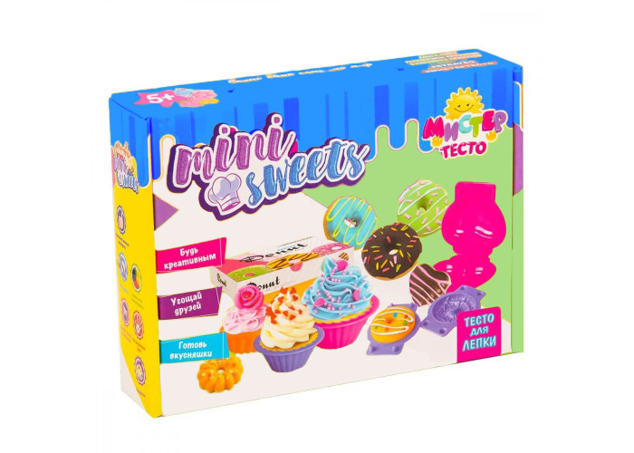 Приготувати знамениті ласощі - пончики та інші солодощі допоможе малюкові набір для ліплення «Містер тісто - Mini Sweets». Дитина зможе здивувати своїх друзів незвичайним видом виробів. У цьому йому допоможуть різні формочки і кухонне приладдя. Можна сфантазувало будь-який вид смачного частування і виліпити його зі спеціального тіста.