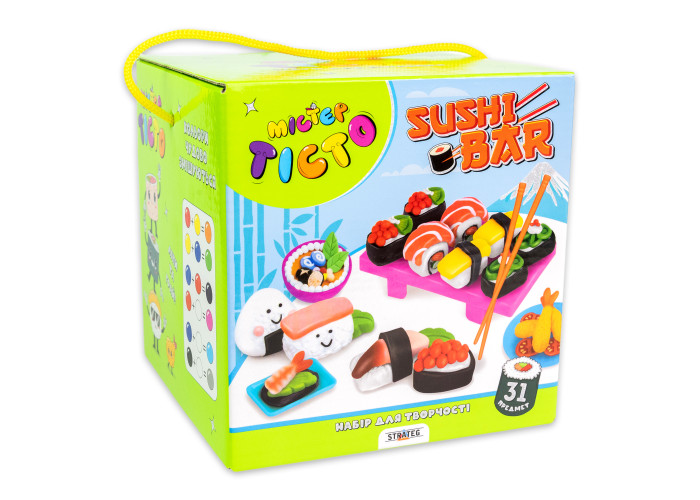 Занурся у світ творчості разом з “Містер тісто. Sushi bar”. Завдяки своїм яскравим кольорам і різноманітним формочкам, які йдуть у комплекті, "Sushi bar" створює захопливу атмосферу творчості та експериментування. Наше тісто дозволяє вам та вашій дитині створити унікальні маленькі суші, а ви зможете насолоджуватися спільним часом та творчим процесом.