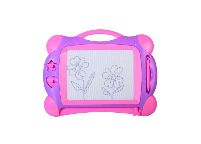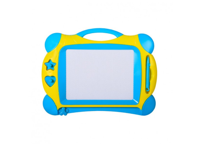 Магнітна дошка для малювання - це весела та цікава розвивальна іграшка, яка сприяє розвитку творчих здібностей дитини. Порадуйте свого маленького художника яскравим та милим креативним подарунком - магнітною дошкою зі штампами. На ній можна втілити будь-які креативні ідеї, відточити техніку та опрацювати ескізи для майбутніх шедеврів в альбомі. Крім магнітної ручки, у розпорядженні дитини опиняться два штампи-печатки - зірочка та сердечко (на кожному зручний для маленьких пальчиків тримач). Аксесуари при зіткненні з полотном притягують магнітну стружку, завдяки чому і виходить малюнок. А якщо закінчиться місце - просто зітріть намальоване спеціальним важелем, розташованим внизу. Зверху на дошці передбачена ручка. Завдяки їй іграшку зручно носити з собою або можна повісити на стіну. Магнітна дошка досить компактна і її можна брати в дорогу та подорожі, щоб малюкові не було нудно. Такі забави урізноманітнюють дозвілля дитини, позитивно вплинуть на моторику рук та сприятимуть розвитку творчих здібностей.