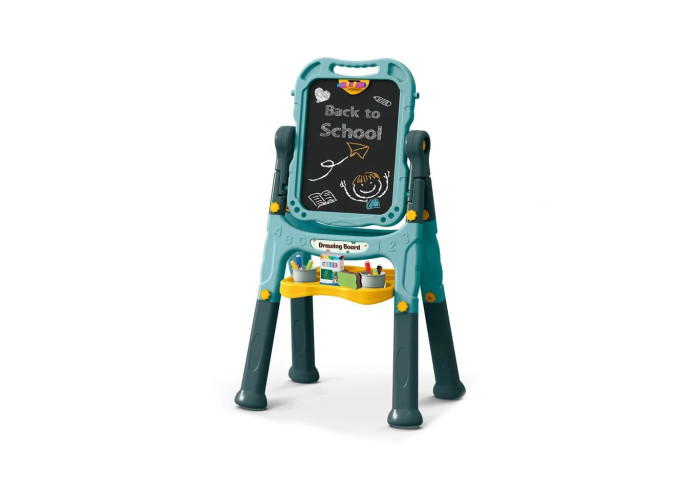 Мольберт двосторонній для малювання та творчості з одного боку має: покриття білого кольору, а з іншого - грифельну поверхню. Для творчих етюдів юного художника, на білій глянсовій поверхні, можна малювати пальчиковими фарбами, фломастерами на водній основі, маркерами, а з іншого боку дошки - крейдою.