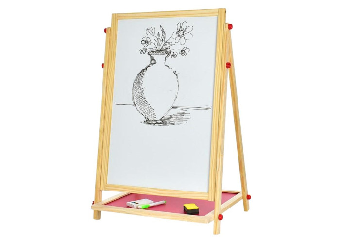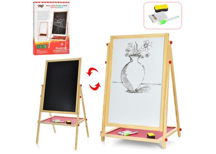 Дерев’яний мольберт MD 1588 — ідеальний вибір для маленьких художників, що поєднує естетику та функціональність. Цей двосторонній мольберт виготовлений з натурального дерева, що додає йому природного шарму й забезпечує безпеку для дітей. Мольберт має дві різні поверхні: одну — білу магнітну, яка дозволяє малювати маркерами та прикріплювати магніти, а іншу — чорну крейдяку дошку для малювання крейдою. Додаткова поличка зручна для зберігання маркерів, крейди та інших матеріалів. Це чудовий інструмент для розвитку творчих здібностей, уяви та моторики дітей.