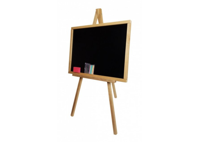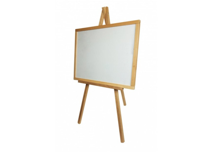 Мольберт двосторонній – яскравий, барвистий двосторонній дитячий мольберт, який послужить дитині для розвитку творчих здібностей, навичок письма, читання та малювання. Великий дерев’яний мольберт має двосторонню дошку для малювання. Одна сторона чорного кольору для малювання крейдою, інша – білого кольору для малювання на водній основі фломастером. Мольберт двосторонній дитячий має три рівні висоти кріплення. Його малюнок кріпиться у альбомному чи книжковому форматі.
