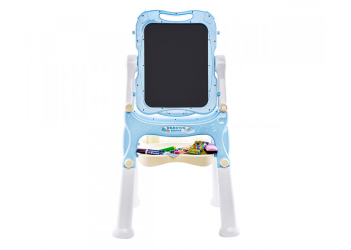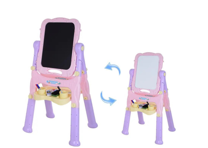 Мольберт двосторонній для малювання та творчості з одного боку має: покриття білого кольору, а з іншого - грифельну поверхню. Для творчих етюдів юного художника, на білій глянсовій поверхні, nbsp; можна малювати пальчиковими фарбами, фломастерами на водній основі, маркерами, а з іншого боку дошки - крейдою.