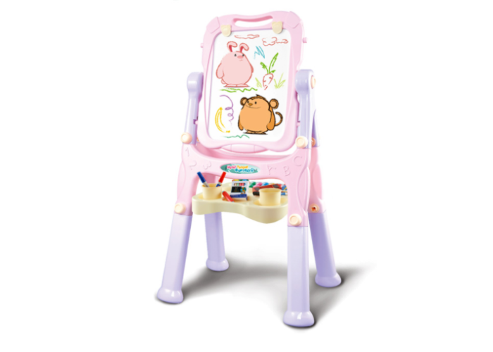 Магнітний мольберт - незамінна річ у процесі навчання письма, читання та просто для домашніх ігор, конкурсів та художніх експериментів. Підтримувати чистоту дуже просто, адже дошка з одного боку стирається звичайною сухою губкою, а інші матеріали легко миються. З мольбертом зручно проводитиме підготовчі заняття зі старшими дітьми до школи, а малюки перестануть малювати на стінах.