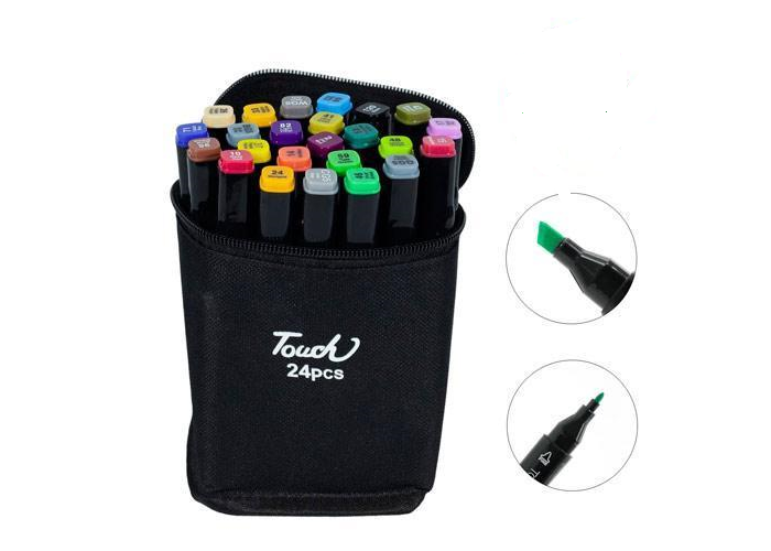 - Спиртові маркери Touch Qiuci для тих, хто захоплений малюванням та каліграфією, любить створювати комікси та мальовничі ескізи. У наборі 24 маркери різних кольорів. Корпус пластиковий гладкий. Ковпачки щільно закриваються.