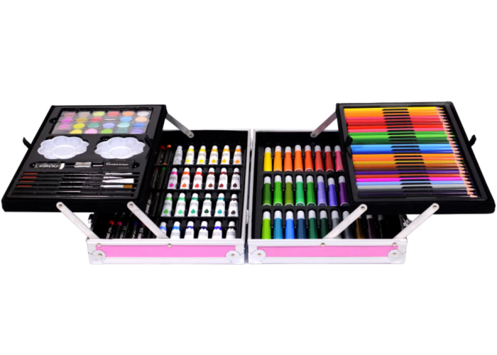 Дитячий набір для творчості художника "Єдиноріг" — в кейсі ви знайдете 145 предметів, які допоможуть дитині розвинути креативність, фантазію, дрібну моторику і спробувати себе в ролі художника, помалювати різними олівцями і фарбами, поекспериментувати в колірних поєднаннях і відчути себе справжнім творцем. Також науково доведено, що подібний дозвілля позитивно впливає на розвиток мовного центру. Всі предмети, включаючи фарби, абсолютно безпечні в їх склад не входять компоненти, які могли б негативно позначитися на здоров'ї дитини.
