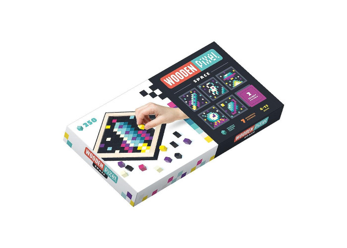 Дерев'яна мозаїка Cubika Wooden Pixel на 250 деталей, включає дерев'яну рамку, інструкцію по збірці і 250 дерев'яних різнокольорових пікселів, з яких можна скласти сім картинок.