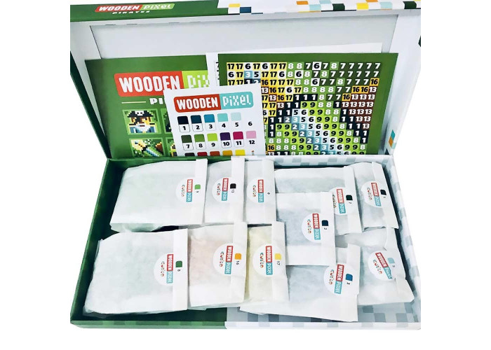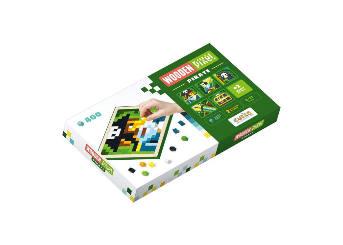 Дерев'яна мозаїка Cubika Wooden Pixel на 400деталей, включає дерев'яну рамку, інструкцію по збірці і 400 дерев'яних різнокольорових пікселів, з яких можна скласти сім картинок.