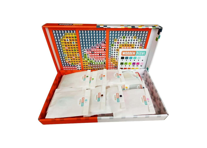 Дерев'яна мозаїка Cubika Wooden Pixel на 400деталей, включає дерев'яну рамку, інструкцію по збірці і 400 дерев'яних різнокольорових пікселів, з яких можна скласти сім картинок.
