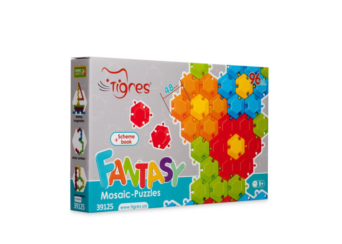 Мозаїка-пазли «Фантазія» 96 елементів - яскрава і цікава розвиваюча іграшка для дитини, за допомогою якої можна створювати цікаві композиції з яскравих деталей. Це можуть бути тваринки, будиночки, машинки і будь-які інші шедеври, на які тільки здатна дитяча фантазія.