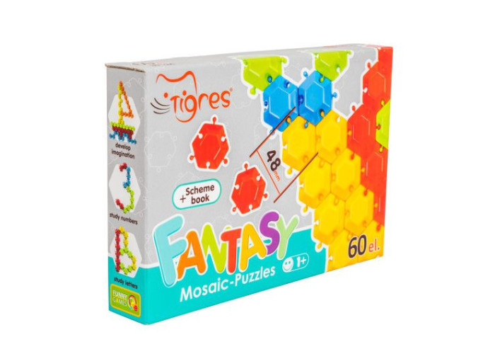 Мозаїка-пазли «Фантазія» 60 елементів - яскрава і цікава розвиваюча іграшка для дитини, за допомогою якої можна створювати цікаві композиції з яскравих деталей. Це можуть бути тваринки, будиночки, машинки і будь-які інші шедеври, на які тільки здатна дитяча фантазія.