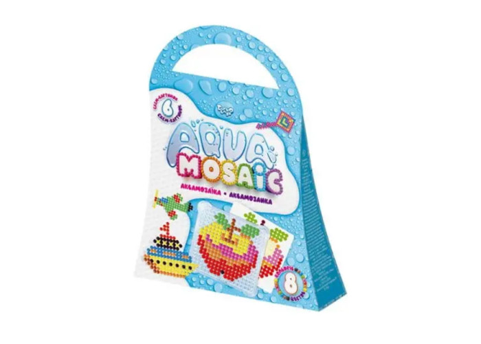 Aqua Mosaic сподобається кожній дитині! Створюйте красиві 3D малюнки з яскравих різнокольорових кульок. Ці кульки мають спеціальний клейовий шар. Достатньо збризкати викладений малюнок водою і почекати до повного висихання. Така творча, креативна гра тренує дрібну моторику та сенсорику, сприяє загальному розвитку дитини.