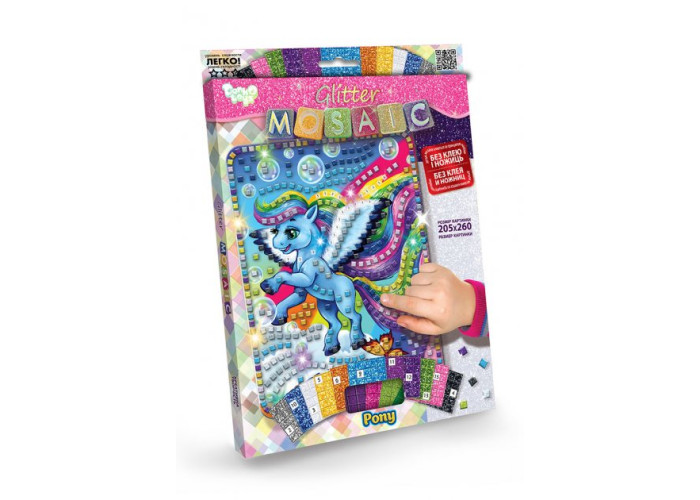 У наборі гнучкі палетки різних кольорів. Кожен кольоровий блок має номер. Дитина вибирає і відокремлює елементи мозаїки за номером та кольором і кріпить палетки на картонну основу-заготовку. В результаті зусиль і копіткої праці виходить кольорова картинка-мозаїка, зроблена своїми руками. Розмір упаковки: 29,5х21,5 см. Розмір картинки: 20,5х26 см.