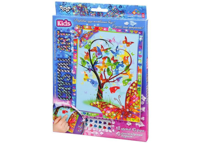 Розкладіть перед собою складові набору: схему-картину і палетки з кристалами. Кожна форма кристалів наклеєна на прозору палетку і вже має клейовий шар. Ножиці і клей не знадобляться. По завершенні роботи над картинкою прикрасьте кристалами рамку. 9 кольорів, 6 форм.