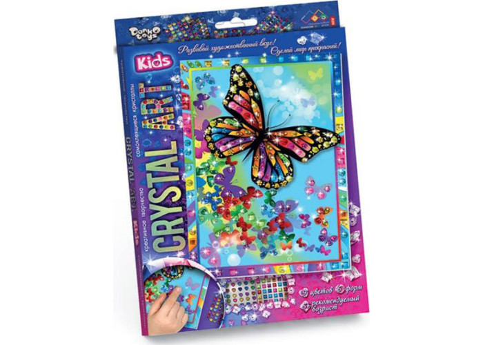 Розкладіть перед собою складові набору: схему-картину і палетки з кристалами. Кожна форма кристалів наклеєна на прозору палетку і вже має клейовий шар. Ножиці і клей не знадобляться. По завершенні роботи над картинкою прикрасьте кристалами рамку. 9 кольорів, 6 форм.