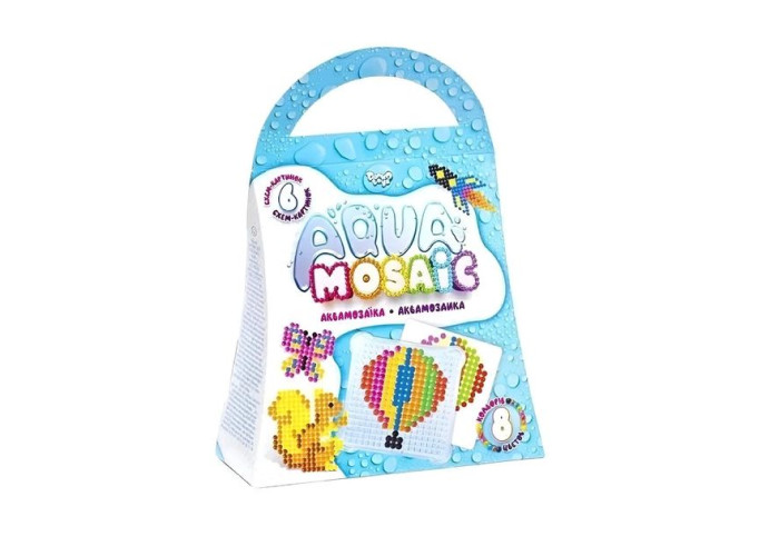Aqua Mosaic сподобається кожній дитині! Створюйте красиві 3D малюнки з яскравих різнокольорових кульок. Ці кульки мають спеціальний клейовий шар. Достатньо збризкати викладений малюнок водою і почекати до повного висихання. Така творча, креативна гра тренує дрібну моторику та сенсорику, сприяє загальному розвитку дитини.